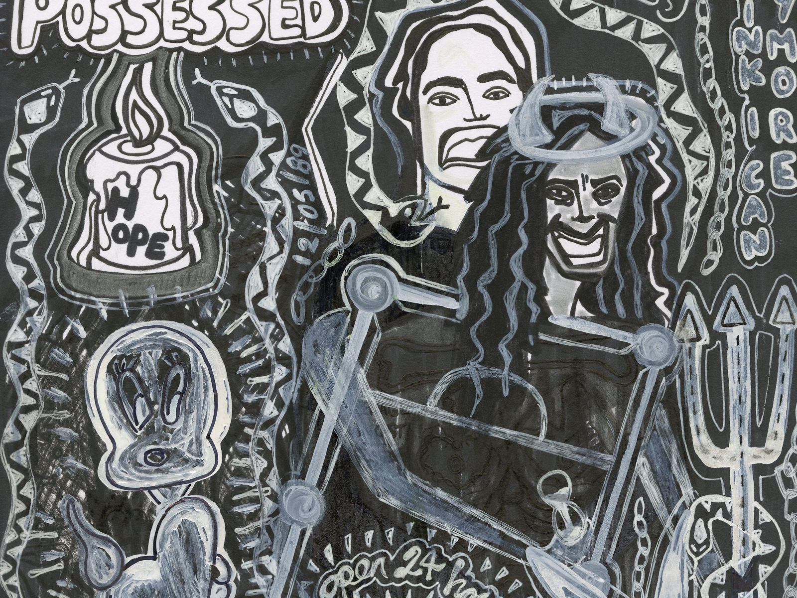 "Fontaine's compulsive, titillating and densely detailed drawings take the viewer on a journey through her mind. Part diary, part fantasy and part information, they fixate on failed romantic relationships, her chronic sickness, therapeutic psychological theories, and the precarious political situation of our time. Largely based on readings from her performances, they continue her exploration into the concept of ‘The Woman on the Edge’ and themes of hysteria and wild desperation, which she believes is “the only adequate response to our society”.