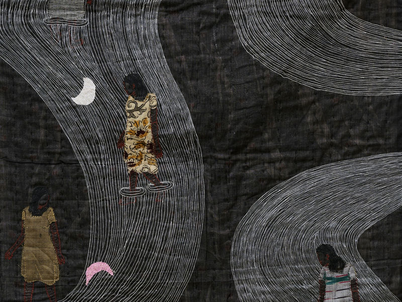 Do you need to go! II, 2023Hand stitched, machine embroidered, waste cloth and yarn on stitched kantha76.2 x 55.9 cm